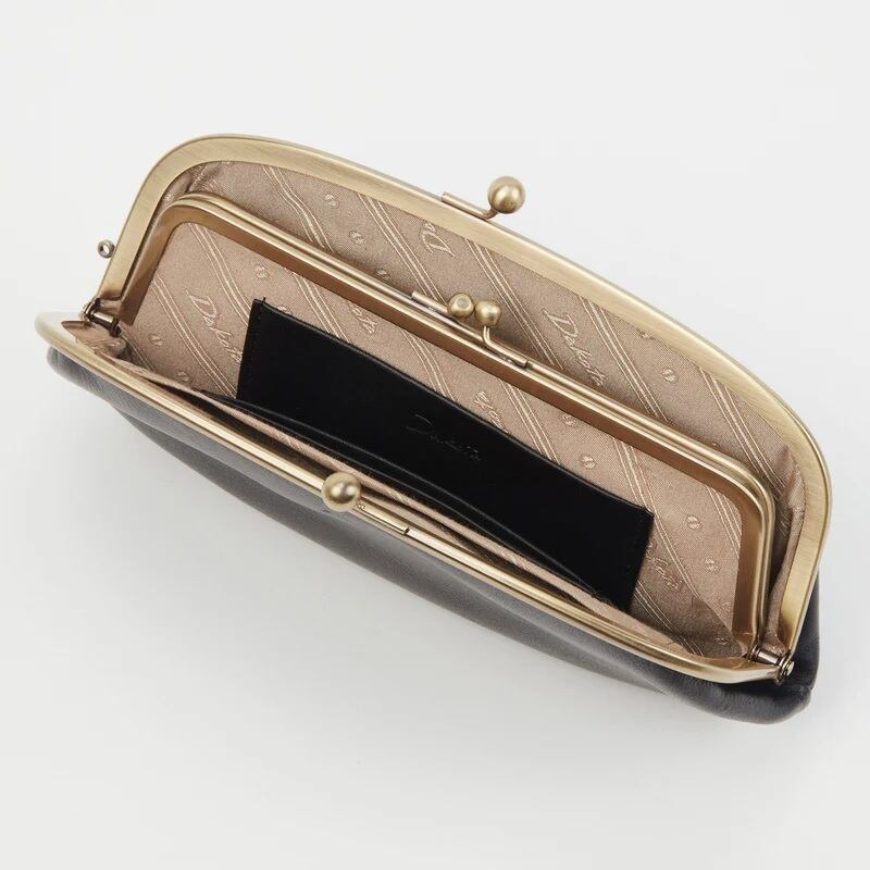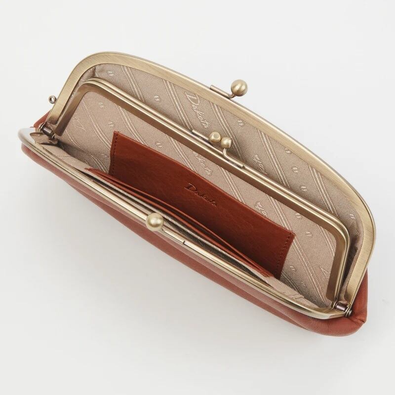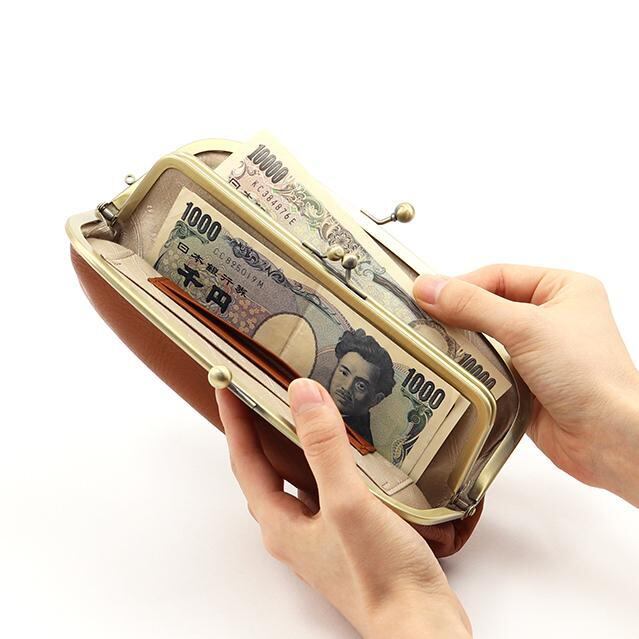 大きながま口の中にさらにがま口がある親子がま口財布。パチンとワンアクションで開閉ができるので、物の出し入れがしやすいデザインです。