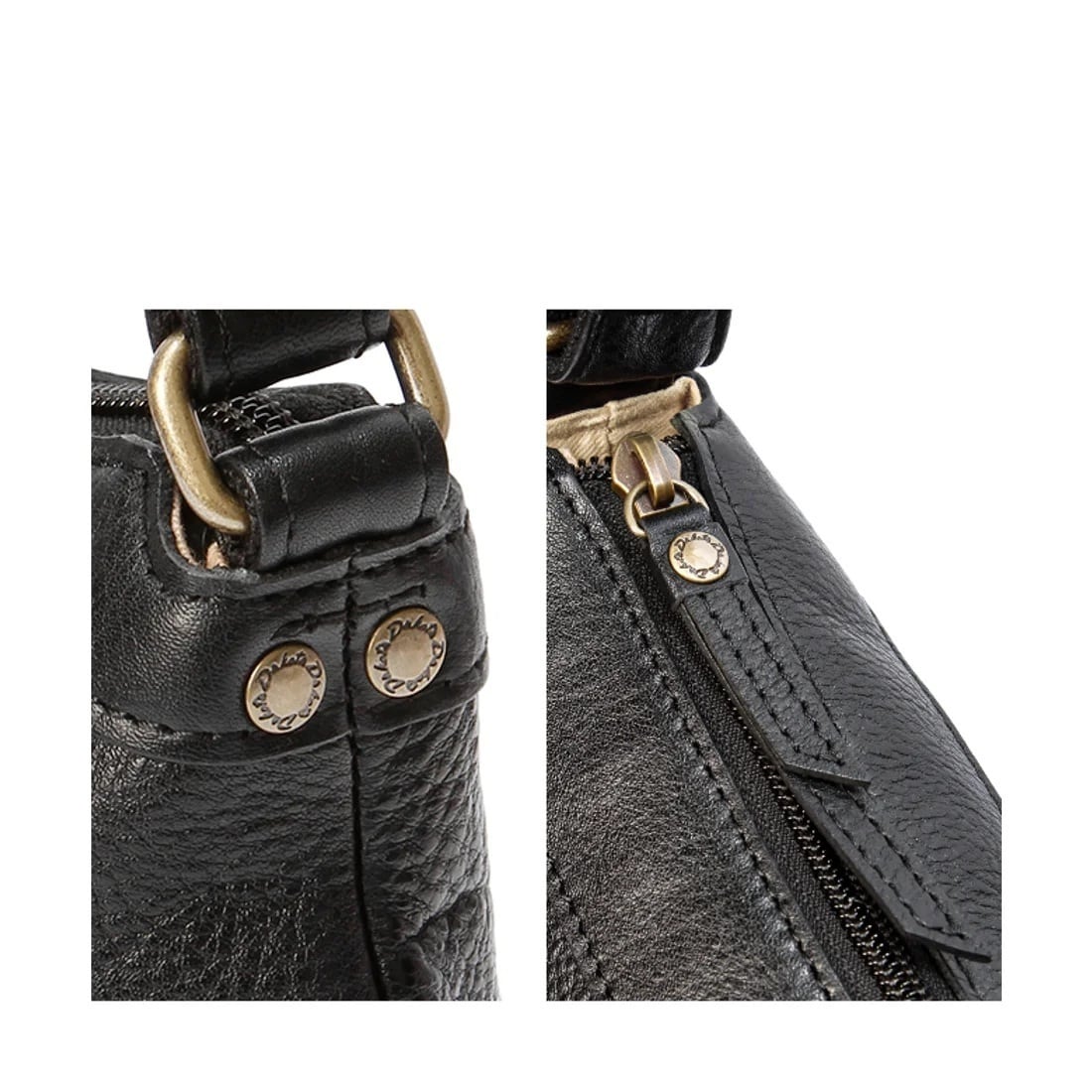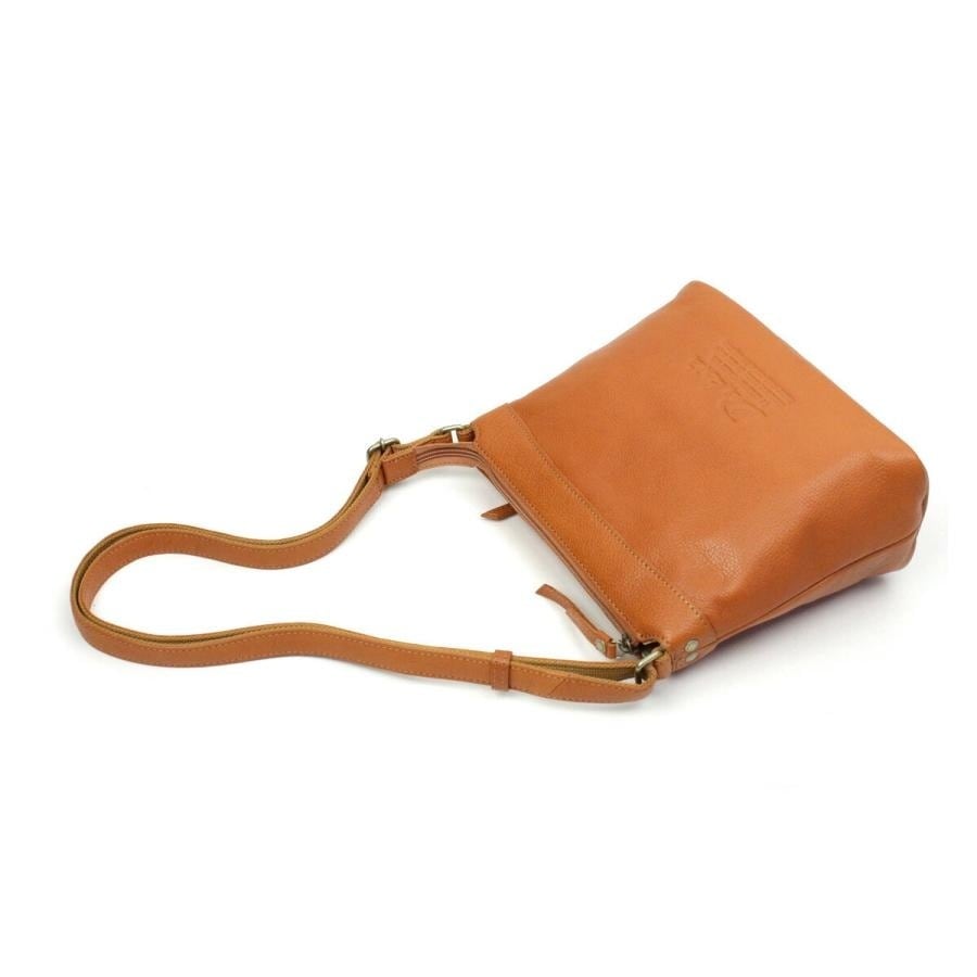 シボ感のあるソフトな牛革。シンプルなデザインに大き目のブランドロゴがアクセントになった小ぶりのショルダーバッグ。小ぶりですが底マチをしっかりとってあるので見た目以上の収納力があります。ショルダー紐は2.5cm幅で長さは約71~130cm。斜め掛けは勿論のこと、二重にして短くすれば肩掛けにもピッタリ。裏側はコットンテープを使っているので滑りにくくなっています。ショルダー付け根のアンティークなリベットは横に2つ並べてポイントに。収納スペースはジッパー開閉。長財布が横にしてちょうど入るサイズ感。底が広いので長財布を入れてもゆとりがあります。ちょっとのお出かけの必需品がしっかり収まるデザイン。ソフトなレザーの質感も良く、軽さも魅力のバッグに仕上がっています。