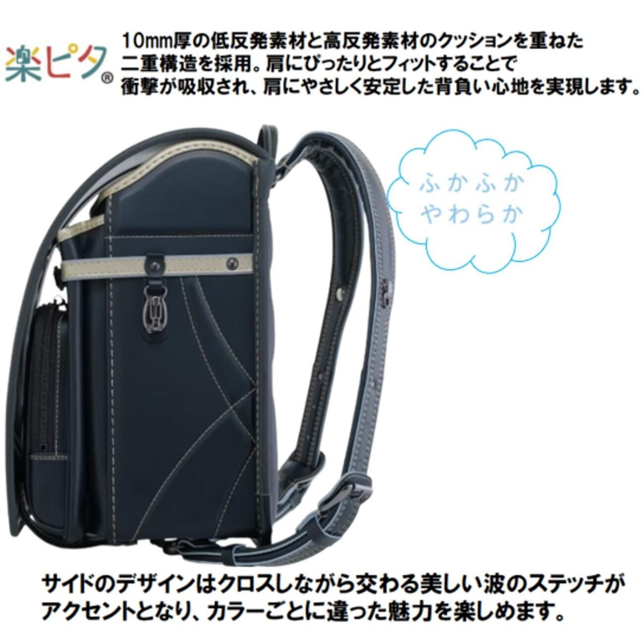 ※「楽ピタR」は、『すこしでも登下校を楽にさせてあげたい』という思いからお子さまの成長期を優しくサポートするために誕生しました。