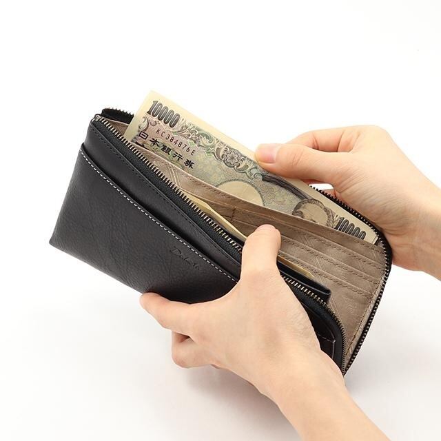 スマートな機能性が好評のL字ファスナータイプの長財布。内側のファスナーレス収納により、小銭・お札・カードをひと目で確認できるワンアクション仕様が魅力です。