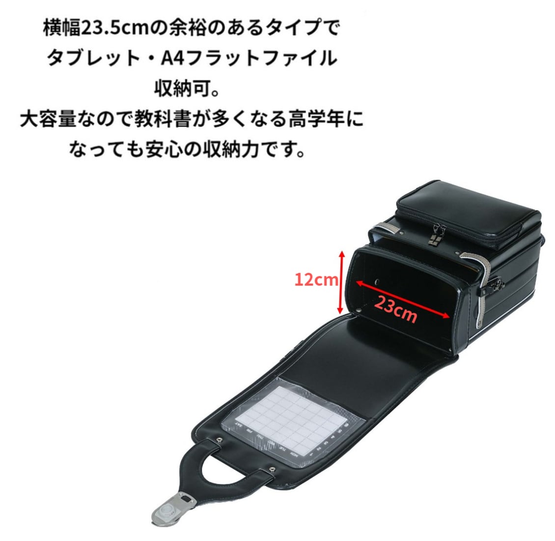 近未来的なイメージでしあげた超軽量タイプのランドセル。
