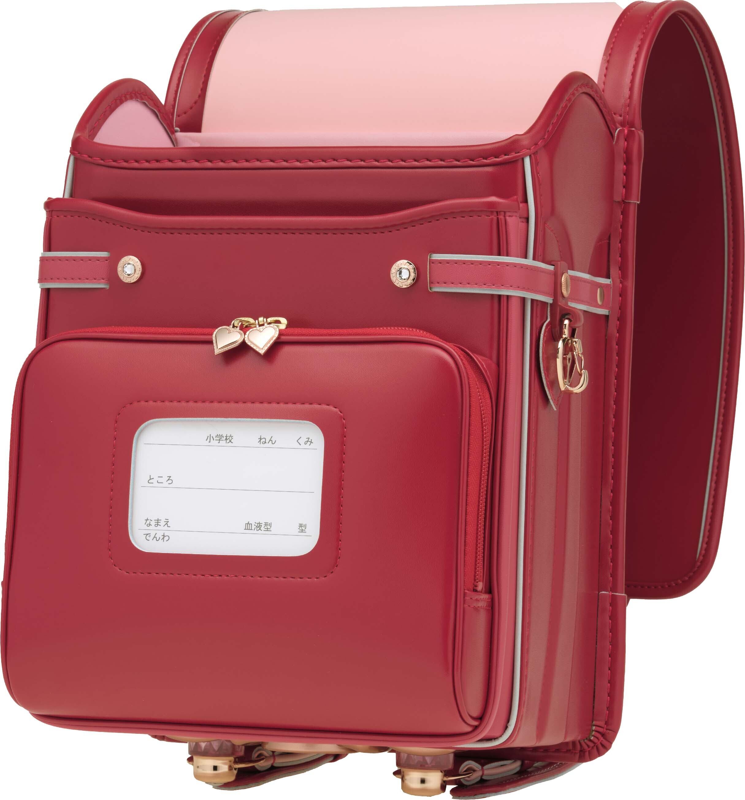その他機能:ワイドポケット/くるピタ錠前(ハートピンクゴールド 石ピンク)/反射材:超ピカ(マチベルト、肩ベルト反射鋲)/安全ナスカン/持ち手付き